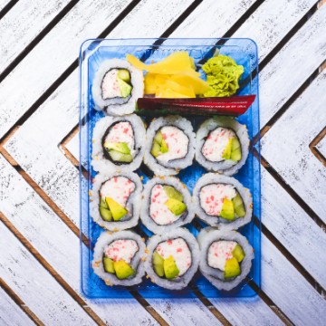 <p>California Roll topped with Avocado Slices.</p>